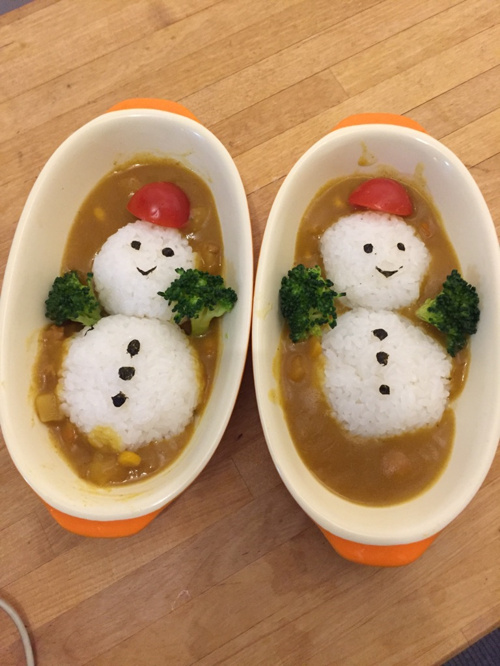 子供に雪だるまカレーをつくりました。